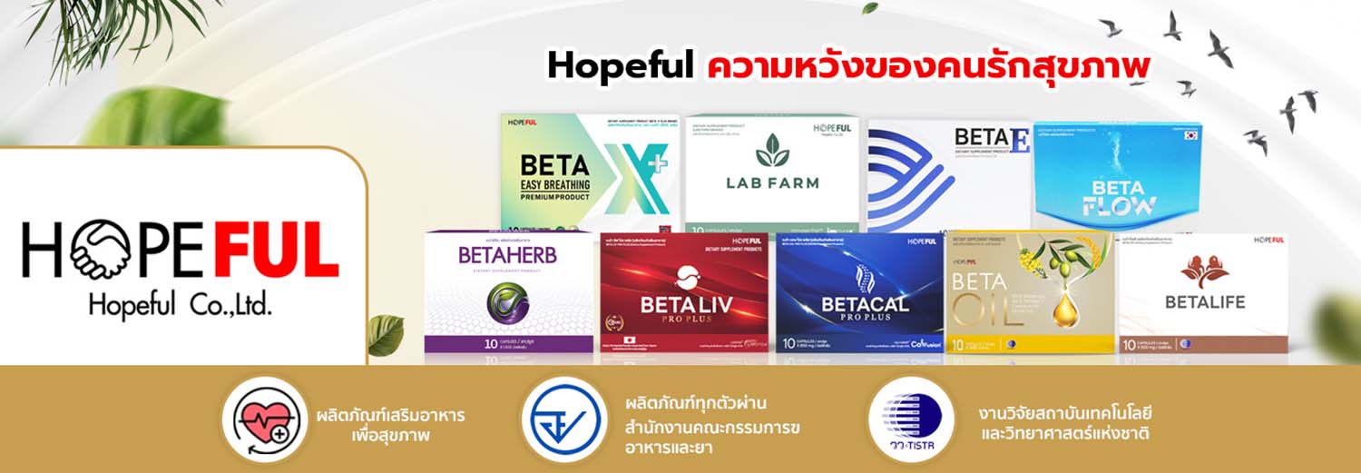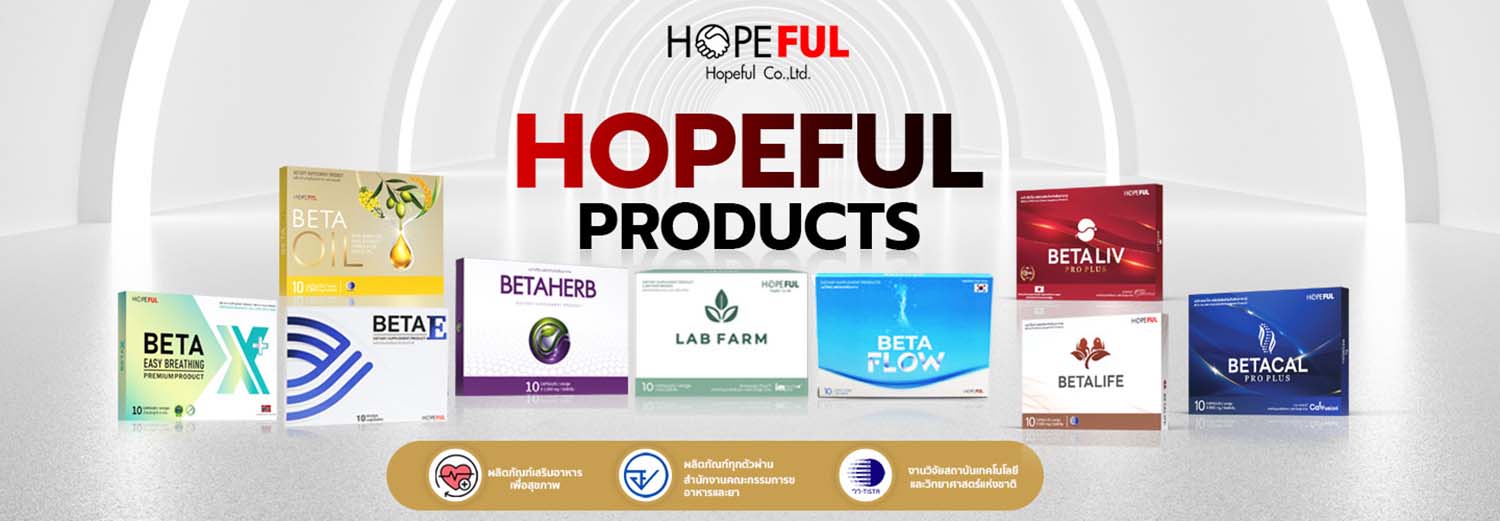 บริษัท โฮปฟูล จำกัด (Hopeful Co., Ltd.) คือผู้ผลิตและจัดจำหน่ายผลิตภัณฑ์ อาหารเสริมเพื่อสุขภาพ ภายใต้แนวคิด “ดูแลสุขภาพอย่างปลอดภัย ด้วยสาร สกัดที่วิจัยได้จริง” เรามุ่งมั่นในการพัฒนาสูตรที่ตอบโจทย์ปัญหาสุขภาพของคนไทย โดยร่วมมือกับนักวิจัย และสถาบันวิทยาศาสตร์ชั้นนำ เพื่อให้ได้ผลิตภัณฑ์ ที่ทั้งมีประสิทธิภาพ และผ่านมาตรฐานความปลอดภัย